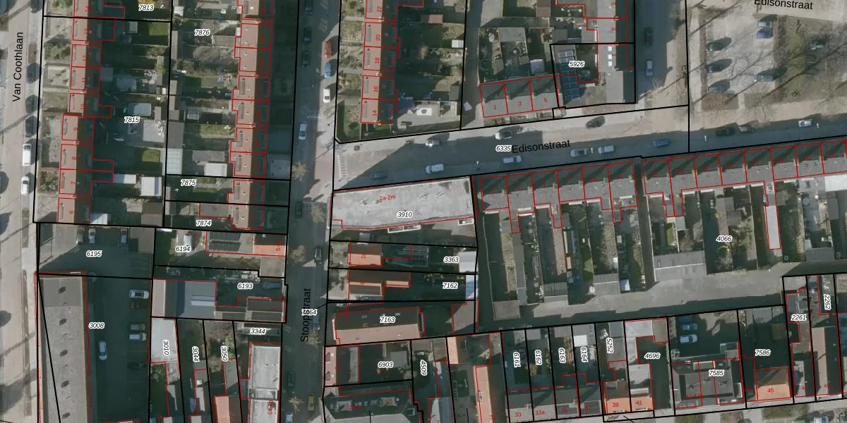 Het perceel waarop Edisonstraat 2-g staat heeft een oppervlakte van 478 m². Dit is een groot perceel. De perceeloppervlakte wordt geregistreerd door het Kadaster. Gedetailleerde informatie over de maten van dit perceel kunt u vinden in het rapport Kadastrale kaart met maatvoering van Edisonstraat 2-g.