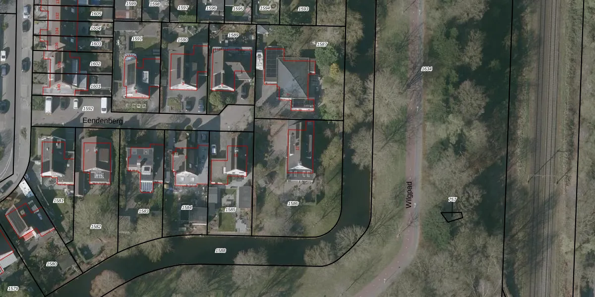 Het perceel waarop Eendenberg 12 staat heeft een oppervlakte van 1163 m². Dit is een zeer groot perceel. De perceeloppervlakte wordt geregistreerd door het Kadaster. Gedetailleerde informatie over de maten van dit perceel kunt u vinden in het rapport Kadastrale kaart met maatvoering van Eendenberg 12.