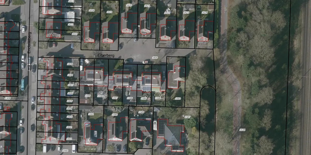 Het perceel waarop Eiberberg 12 staat heeft een oppervlakte van 253 m². Dit is een middelgroot perceel. De perceeloppervlakte wordt geregistreerd door het Kadaster. Gedetailleerde informatie over de maten van dit perceel kunt u vinden in het rapport Kadastrale kaart met maatvoering van Eiberberg 12.