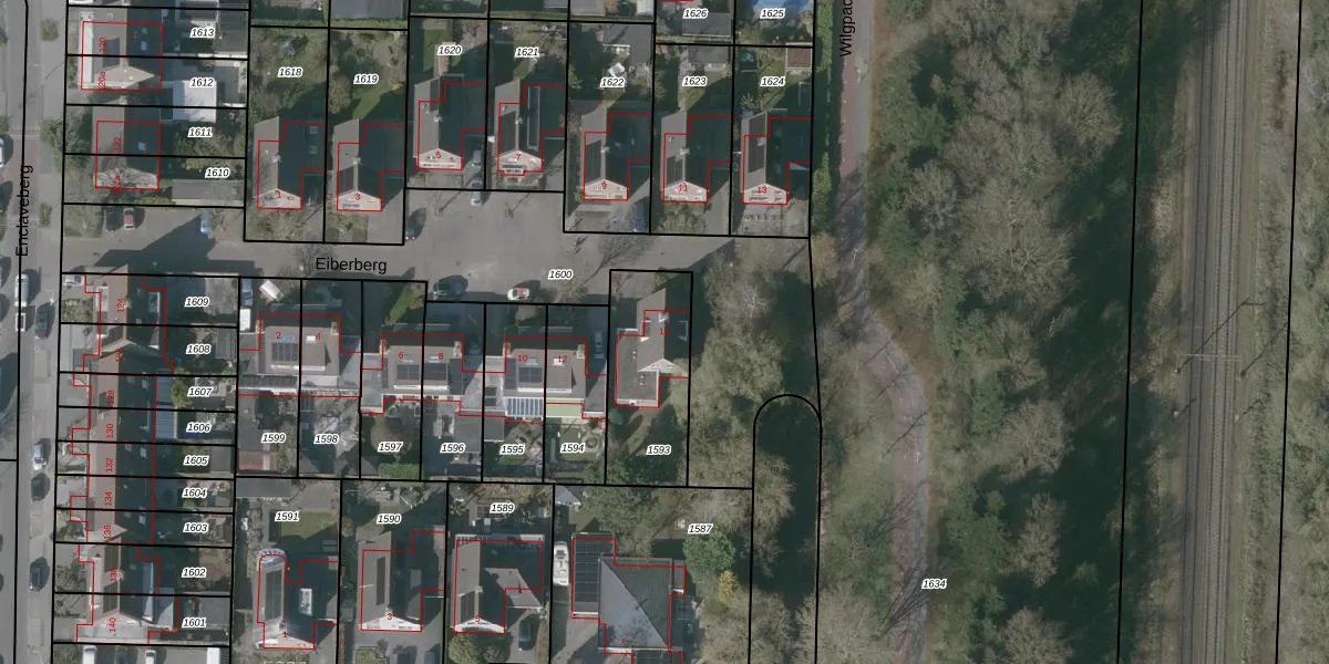 Het perceel waarop Eiberberg 14 staat heeft een oppervlakte van 399 m². Dit is een groot perceel. De perceeloppervlakte wordt geregistreerd door het Kadaster. Gedetailleerde informatie over de maten van dit perceel kunt u vinden in het rapport Kadastrale kaart met maatvoering van Eiberberg 14.