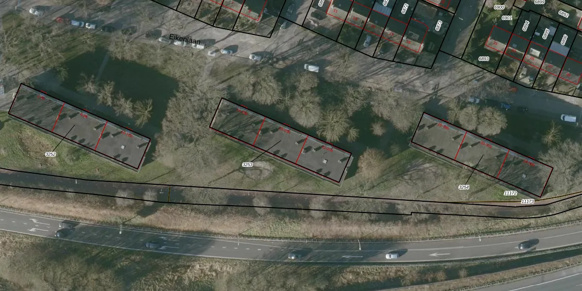 Het perceel waarop Eikenlaan 20 staat heeft een oppervlakte van 535 m². Dit is een groot perceel. De perceeloppervlakte wordt geregistreerd door het Kadaster. Gedetailleerde informatie over de maten van dit perceel kunt u vinden in het rapport Kadastrale kaart met maatvoering van Eikenlaan 20.