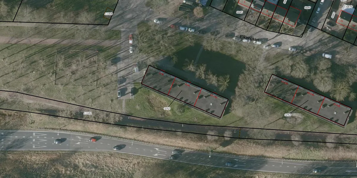 Het perceel waarop Eikenlaan 6-b staat heeft een oppervlakte van 535 m². Dit is een groot perceel. De perceeloppervlakte wordt geregistreerd door het Kadaster. Gedetailleerde informatie over de maten van dit perceel kunt u vinden in het rapport Kadastrale kaart met maatvoering van Eikenlaan 6-b.