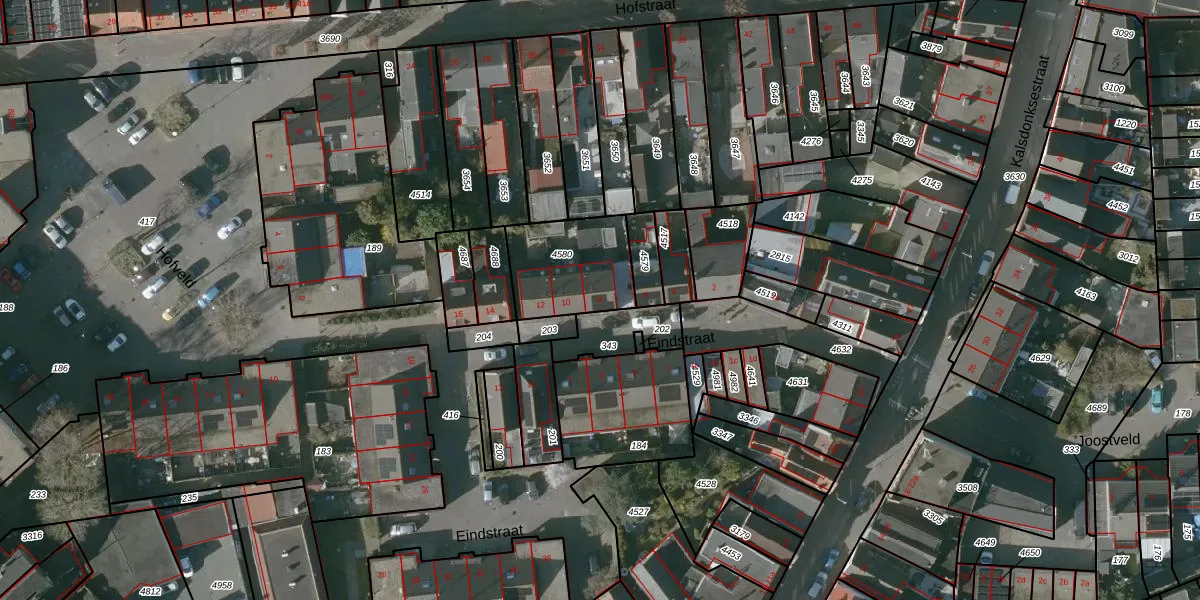 Eindstraat 8 is gelegen op kadastraal perceel RSD00L4580. Deze kadastrale aanduiding is uniek en wordt gebruikt door het Kadaster om eigendomsrechten en andere zakelijke rechten vast te leggen. Het perceel maakt onderdeel uit van de kadastrale gemeente Roosendaal en Nispen.