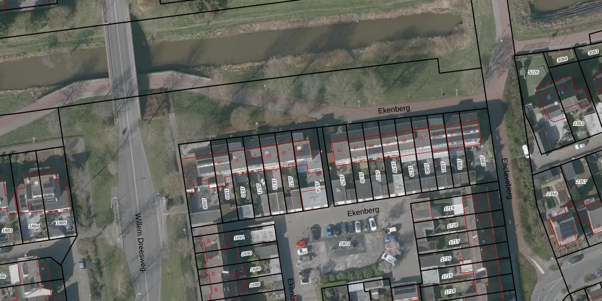 Het perceel waarop Ekenberg 59 staat heeft een oppervlakte van 233 m². Dit is een middelgroot perceel. De perceeloppervlakte wordt geregistreerd door het Kadaster. Gedetailleerde informatie over de maten van dit perceel kunt u vinden in het rapport Kadastrale kaart met maatvoering van Ekenberg 59.