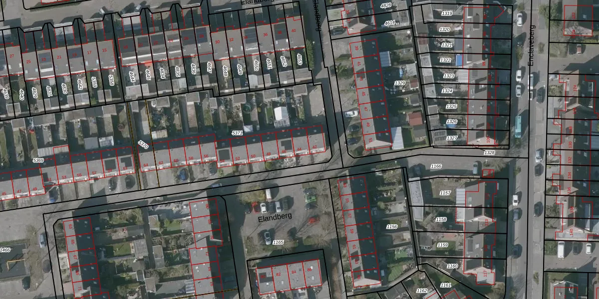 Het perceel waarop Elandberg 44 staat heeft een oppervlakte van 1652 m². Dit is een zeer groot perceel. De perceeloppervlakte wordt geregistreerd door het Kadaster. Gedetailleerde informatie over de maten van dit perceel kunt u vinden in het rapport Kadastrale kaart met maatvoering van Elandberg 44.