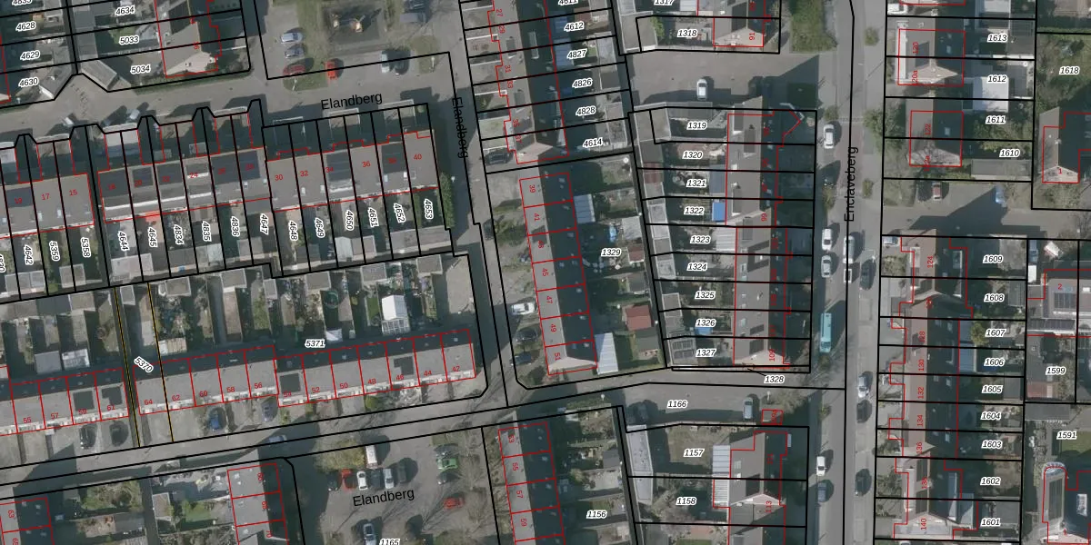 Het perceel waarop Elandberg 45 staat heeft een oppervlakte van 1104 m². Dit is een zeer groot perceel. De perceeloppervlakte wordt geregistreerd door het Kadaster. Gedetailleerde informatie over de maten van dit perceel kunt u vinden in het rapport Kadastrale kaart met maatvoering van Elandberg 45.