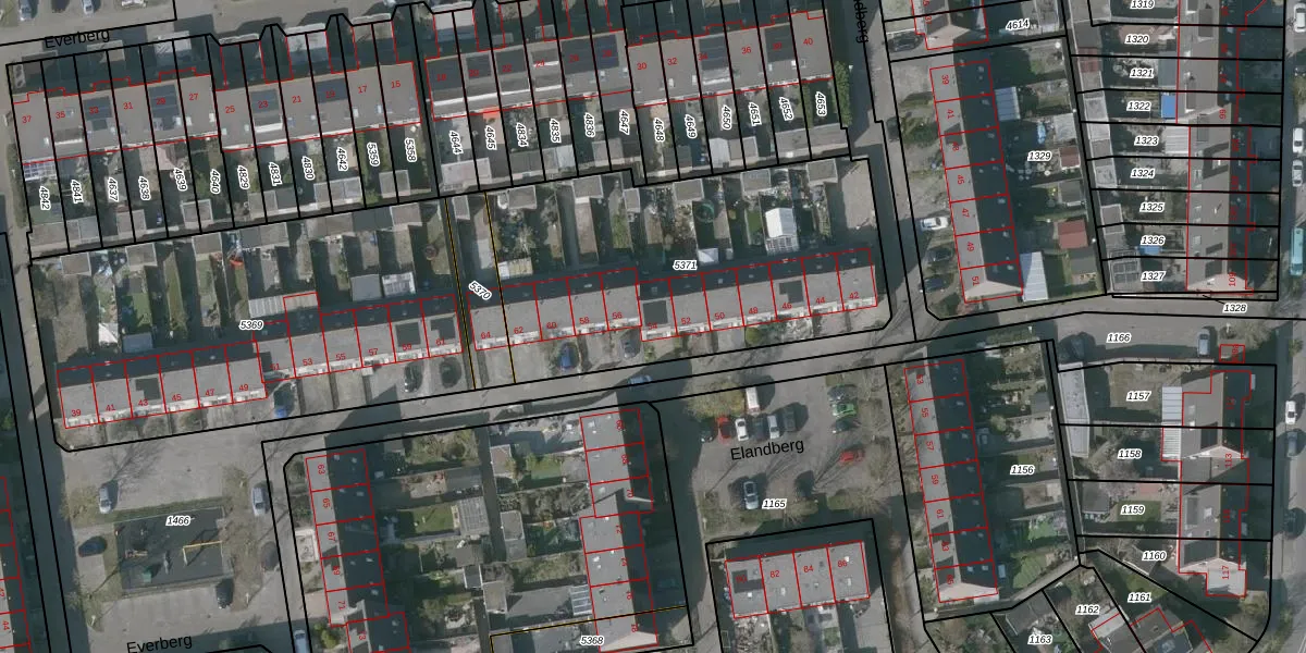 Het perceel waarop Elandberg 54 staat heeft een oppervlakte van 1652 m². Dit is een zeer groot perceel. De perceeloppervlakte wordt geregistreerd door het Kadaster. Gedetailleerde informatie over de maten van dit perceel kunt u vinden in het rapport Kadastrale kaart met maatvoering van Elandberg 54.