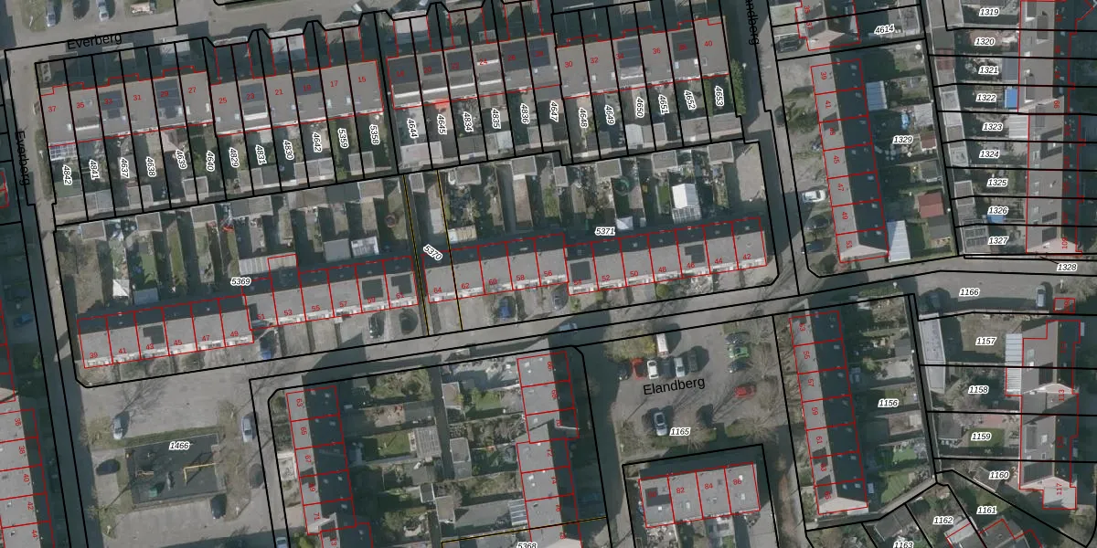 Het perceel waarop Elandberg 56 staat heeft een oppervlakte van 1652 m². Dit is een zeer groot perceel. De perceeloppervlakte wordt geregistreerd door het Kadaster. Gedetailleerde informatie over de maten van dit perceel kunt u vinden in het rapport Kadastrale kaart met maatvoering van Elandberg 56.