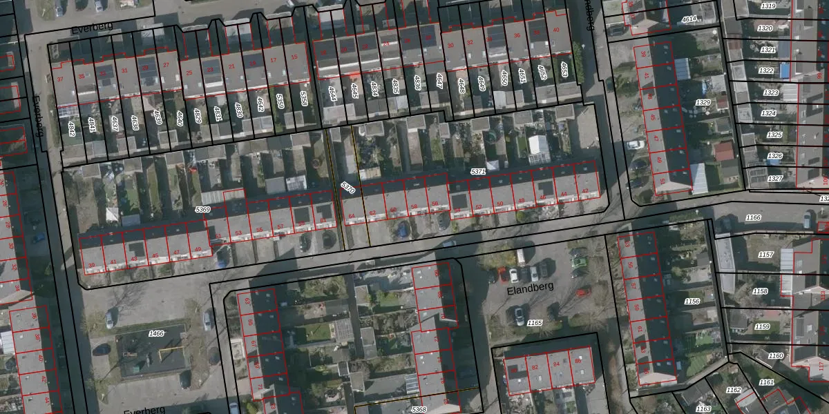 Het perceel waarop Elandberg 58 staat heeft een oppervlakte van 1652 m². Dit is een zeer groot perceel. De perceeloppervlakte wordt geregistreerd door het Kadaster. Gedetailleerde informatie over de maten van dit perceel kunt u vinden in het rapport Kadastrale kaart met maatvoering van Elandberg 58.