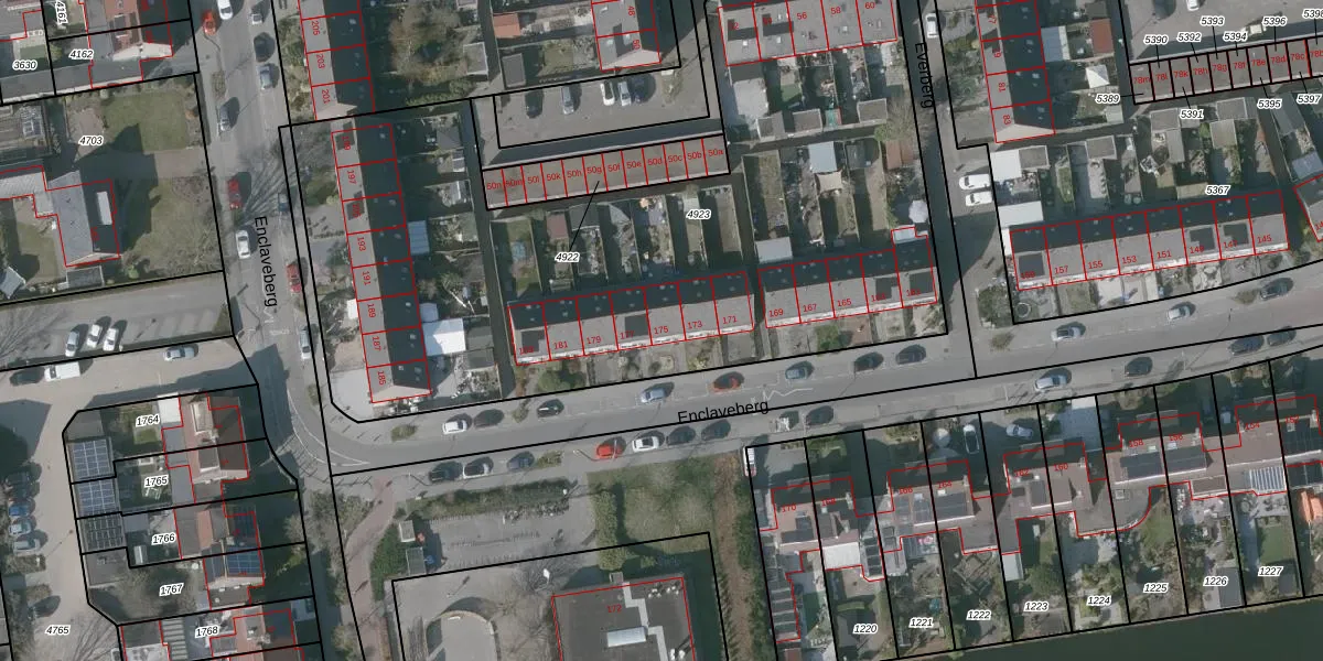 Het perceel waarop Enclaveberg 175 staat heeft een oppervlakte van 3977 m². Dit is een zeer groot perceel. De perceeloppervlakte wordt geregistreerd door het Kadaster. Gedetailleerde informatie over de maten van dit perceel kunt u vinden in het rapport Kadastrale kaart met maatvoering van Enclaveberg 175.