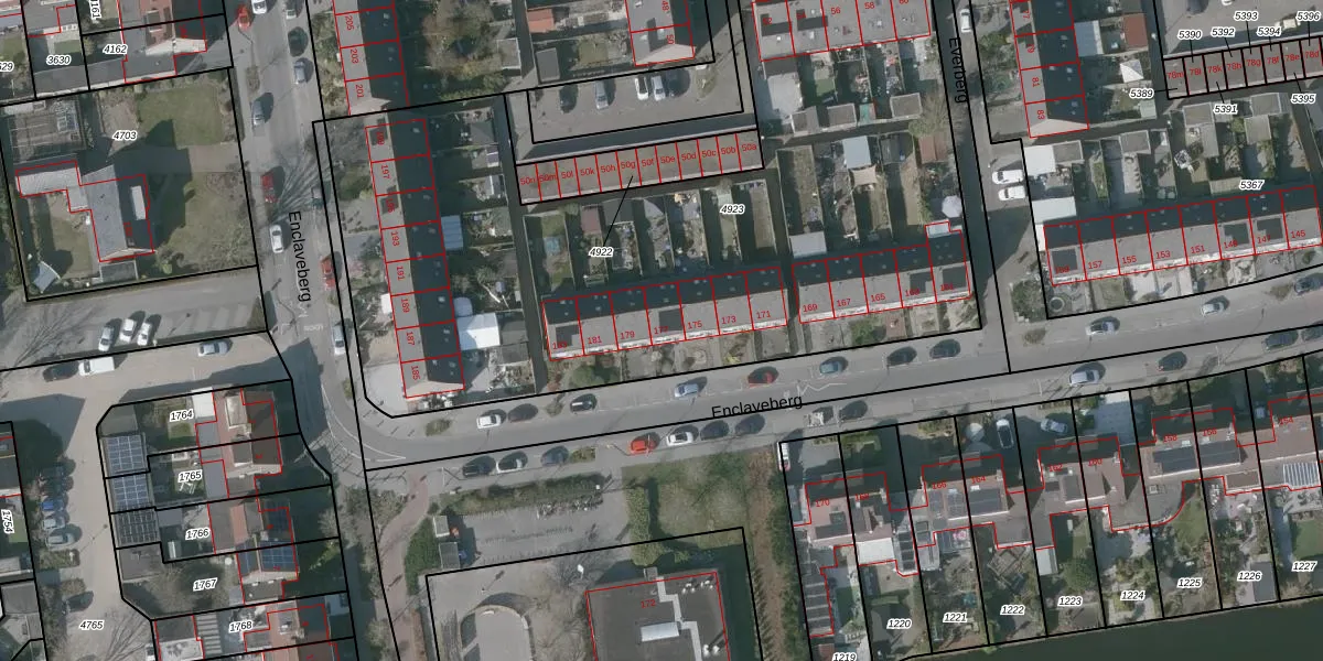 Enclaveberg 177 is gelegen op kadastraal perceel RSD00N4923. Deze kadastrale aanduiding is uniek en wordt gebruikt door het Kadaster om eigendomsrechten en andere zakelijke rechten vast te leggen. Het perceel maakt onderdeel uit van de kadastrale gemeente Roosendaal en Nispen.
