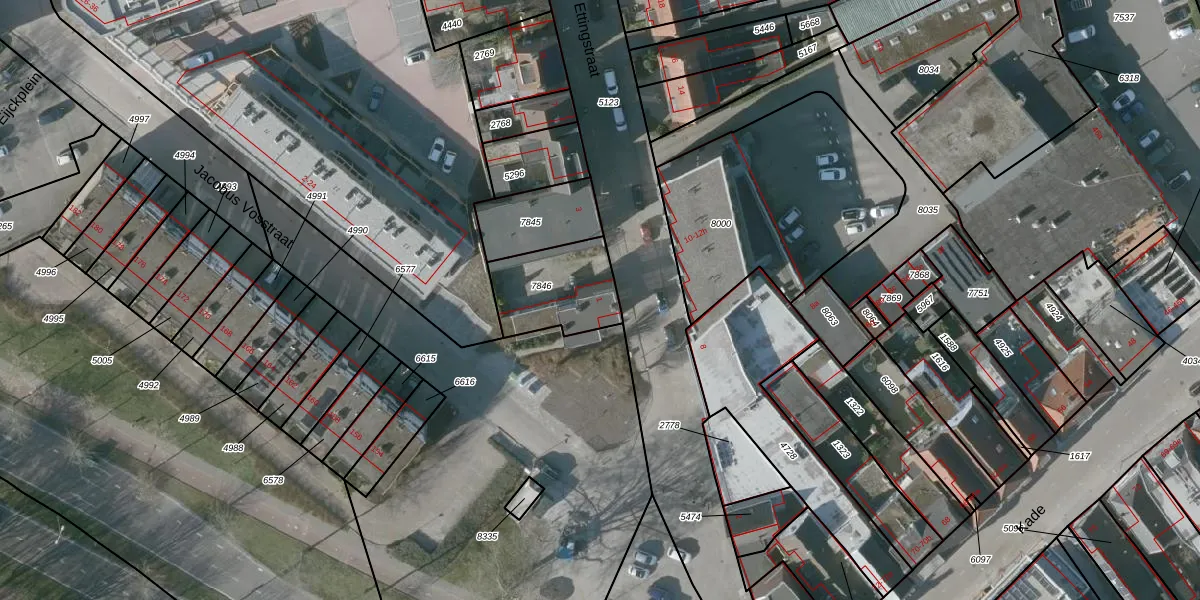 Het perceel waarop Ettingstraat 1 staat heeft een oppervlakte van 281 m². Dit is een middelgroot perceel. De perceeloppervlakte wordt geregistreerd door het Kadaster. Gedetailleerde informatie over de maten van dit perceel kunt u vinden in het rapport Kadastrale kaart met maatvoering van Ettingstraat 1.
