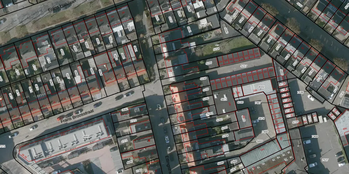 Ettingstraat 32 is gelegen op kadastraal perceel RSD00K5158. Deze kadastrale aanduiding is uniek en wordt gebruikt door het Kadaster om eigendomsrechten en andere zakelijke rechten vast te leggen. Het perceel maakt onderdeel uit van de kadastrale gemeente Roosendaal en Nispen.