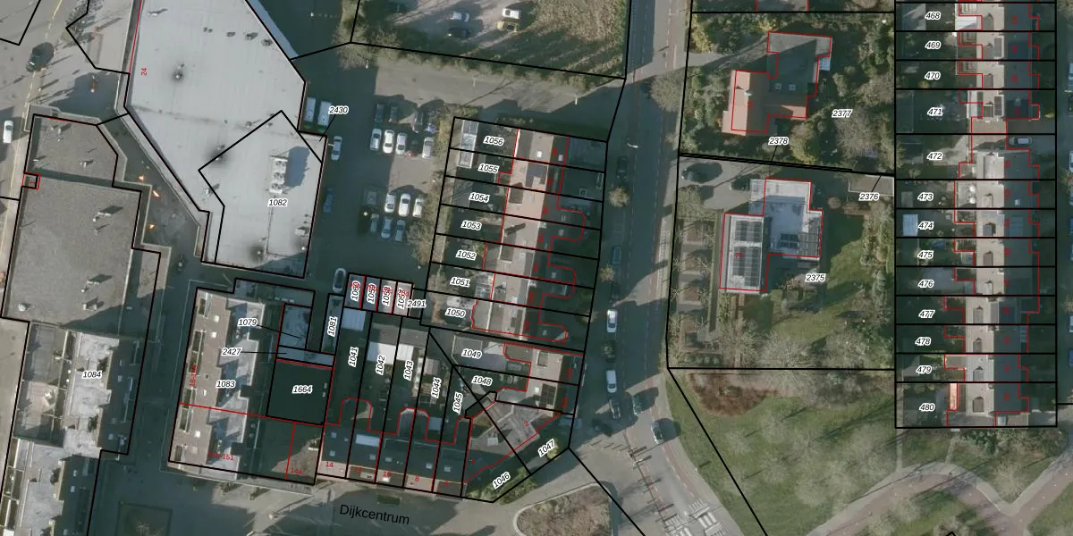 Gebruik de zoekbalk of klik op een perceel voor informatie over de adressen binnen dit perceel.