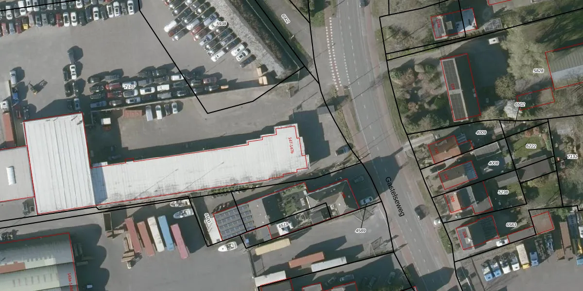 Het perceel waarop Gastelseweg 147 staat heeft een oppervlakte van 7735 m². Dit is een zeer groot perceel. De perceeloppervlakte wordt geregistreerd door het Kadaster. Gedetailleerde informatie over de maten van dit perceel kunt u vinden in het rapport Kadastrale kaart met maatvoering van Gastelseweg 147.