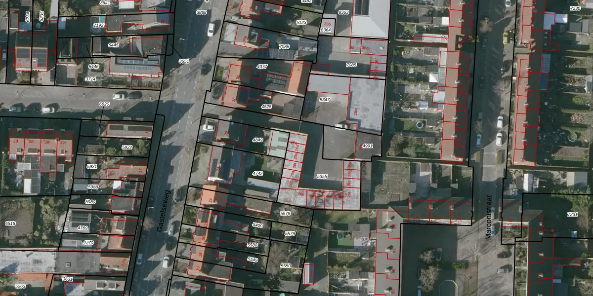 Gastelseweg 26-d is gelegen op kadastraal perceel RSD00B5355. Deze kadastrale aanduiding is uniek en wordt gebruikt door het Kadaster om eigendomsrechten en andere zakelijke rechten vast te leggen. Het perceel maakt onderdeel uit van de kadastrale gemeente Roosendaal en Nispen.