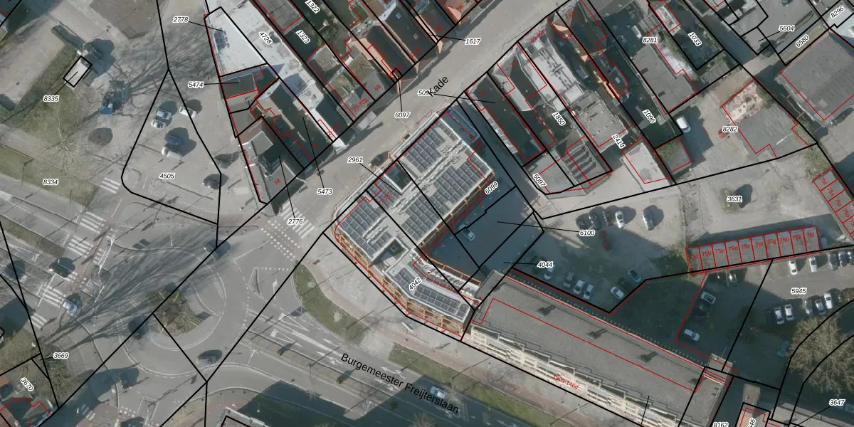 Het perceel waarop Kade 121 staat heeft een oppervlakte van 283 m². Dit is een middelgroot perceel. De perceeloppervlakte wordt geregistreerd door het Kadaster. Gedetailleerde informatie over de maten van dit perceel kunt u vinden in het rapport Kadastrale kaart met maatvoering van Kade 121.