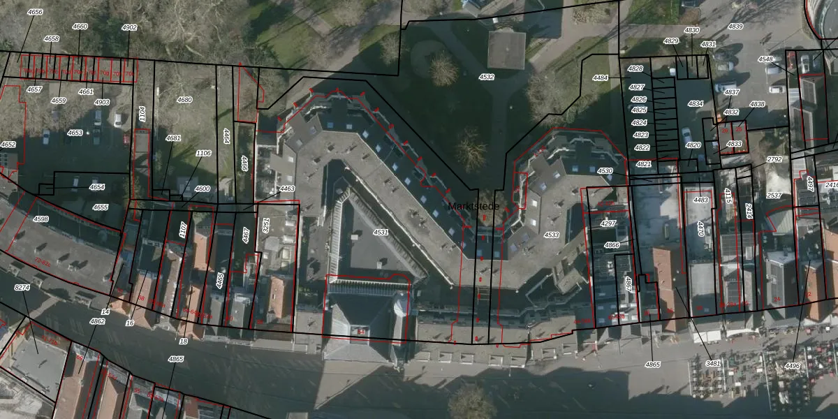 Marktstede 9 is gelegen op kadastraal perceel RSD00L4531. Deze kadastrale aanduiding is uniek en wordt gebruikt door het Kadaster om eigendomsrechten en andere zakelijke rechten vast te leggen. Het perceel maakt onderdeel uit van de kadastrale gemeente Roosendaal en Nispen.