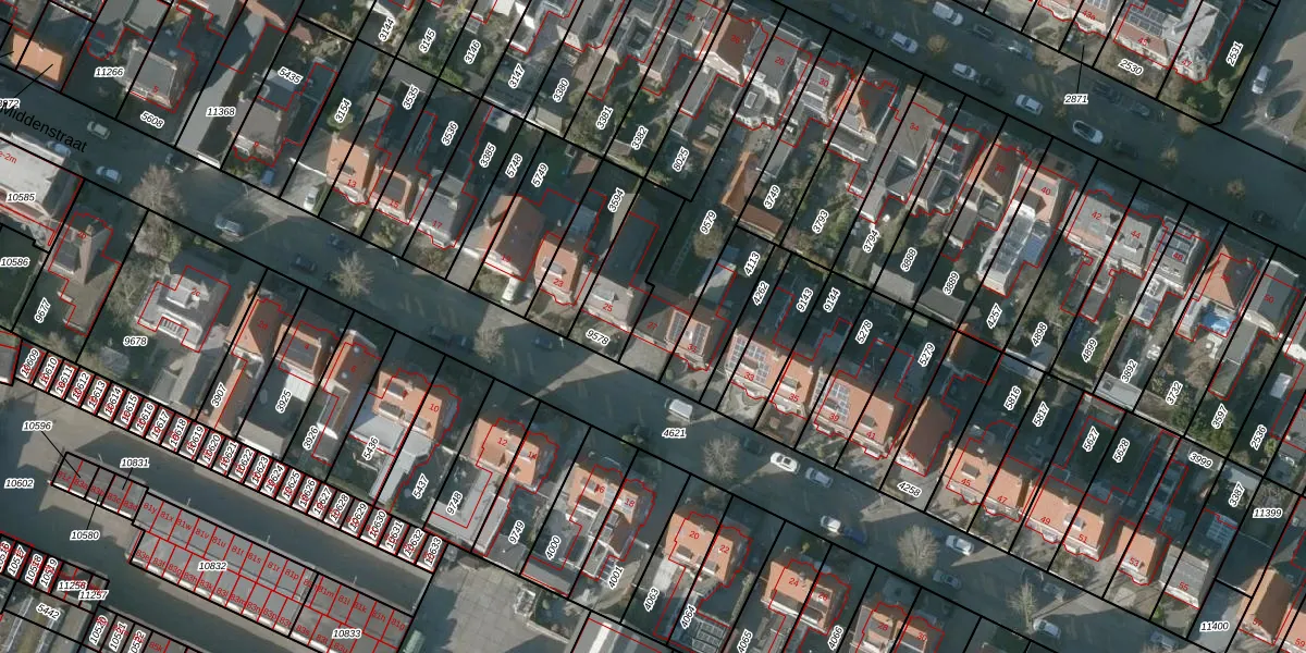 Het perceel waarop Middenstraat 27 staat heeft een oppervlakte van 462 m². Dit is een groot perceel. De perceeloppervlakte wordt geregistreerd door het Kadaster. Gedetailleerde informatie over de maten van dit perceel kunt u vinden in het rapport Kadastrale kaart met maatvoering van Middenstraat 27.