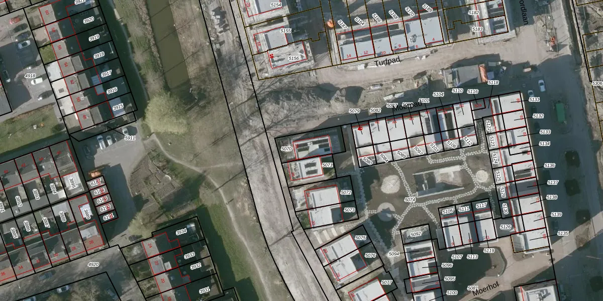 Het perceel waarop Moerpad 38 staat heeft een oppervlakte van 190 m². Dit is een middelgroot perceel. De perceeloppervlakte wordt geregistreerd door het Kadaster. Gedetailleerde informatie over de maten van dit perceel kunt u vinden in het rapport Kadastrale kaart met maatvoering van Moerpad 38.
