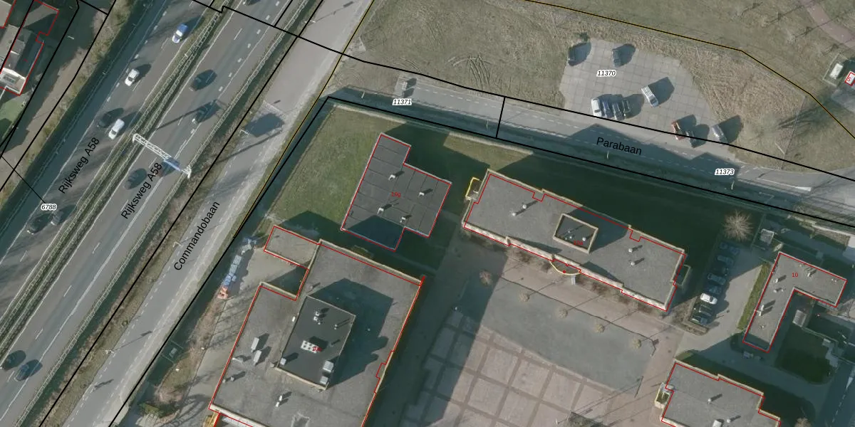 Het perceel waarop Parabaan 10-g staat heeft een oppervlakte van 6,8 ha. Dit is een zeer groot perceel. De perceeloppervlakte wordt geregistreerd door het Kadaster. Gedetailleerde informatie over de maten van dit perceel kunt u vinden in het rapport Kadastrale kaart met maatvoering van Parabaan 10-g.