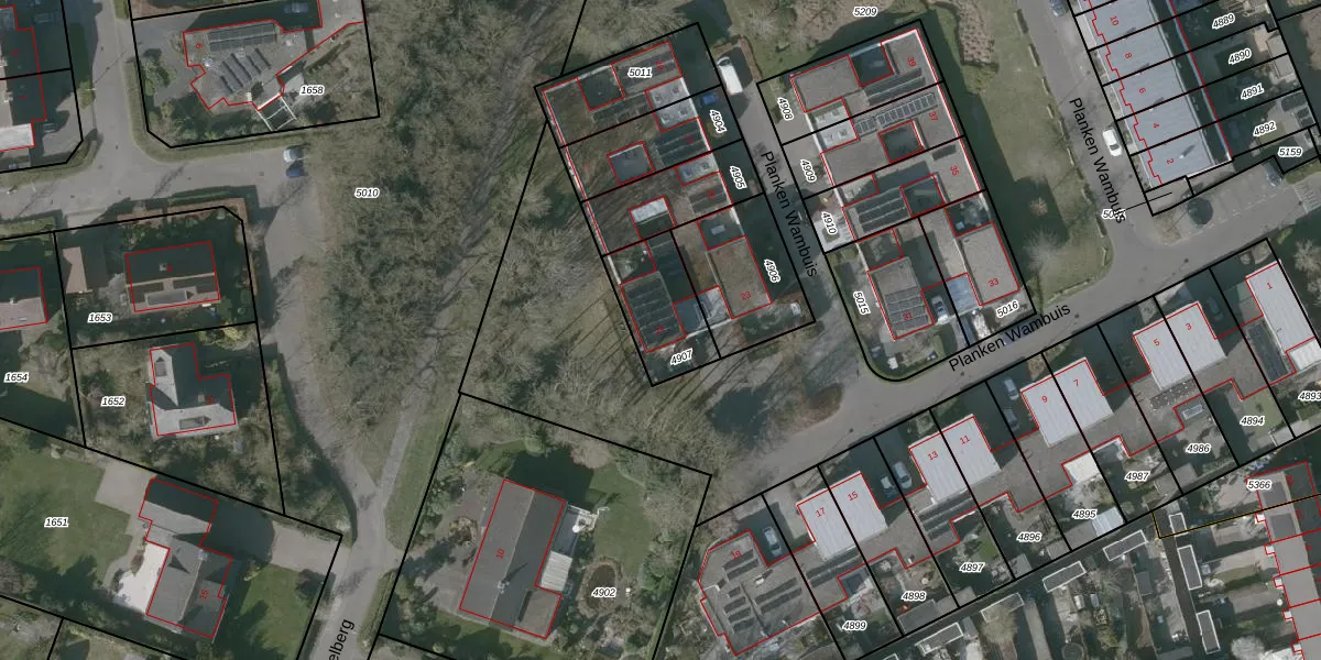 Planken Wambuis 21 is gelegen op kadastraal perceel RSD00N4907. Deze kadastrale aanduiding is uniek en wordt gebruikt door het Kadaster om eigendomsrechten en andere zakelijke rechten vast te leggen. Het perceel maakt onderdeel uit van de kadastrale gemeente Roosendaal en Nispen.