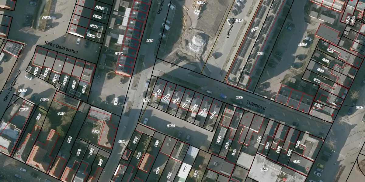 Het perceel waarop Tulpstraat 23 staat heeft een oppervlakte van 89 m². Dit is een klein perceel. De perceeloppervlakte wordt geregistreerd door het Kadaster. Gedetailleerde informatie over de maten van dit perceel kunt u vinden in het rapport Kadastrale kaart met maatvoering van Tulpstraat 23.