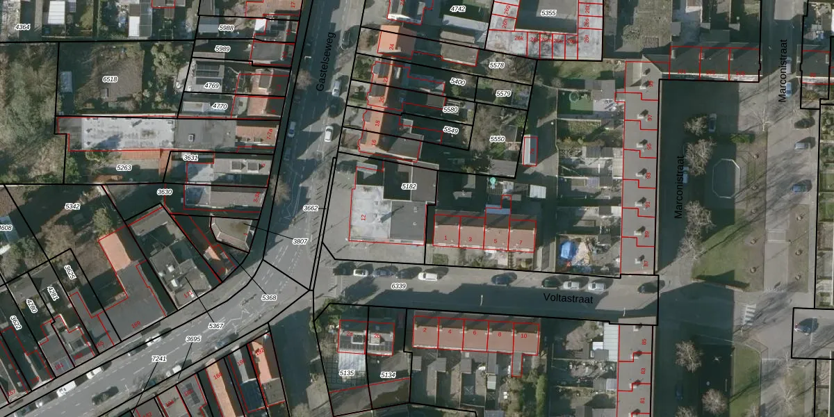 Het perceel waarop Voltastraat 1-b staat heeft een oppervlakte van 592 m². Dit is een groot perceel. De perceeloppervlakte wordt geregistreerd door het Kadaster. Gedetailleerde informatie over de maten van dit perceel kunt u vinden in het rapport Kadastrale kaart met maatvoering van Voltastraat 1-b.