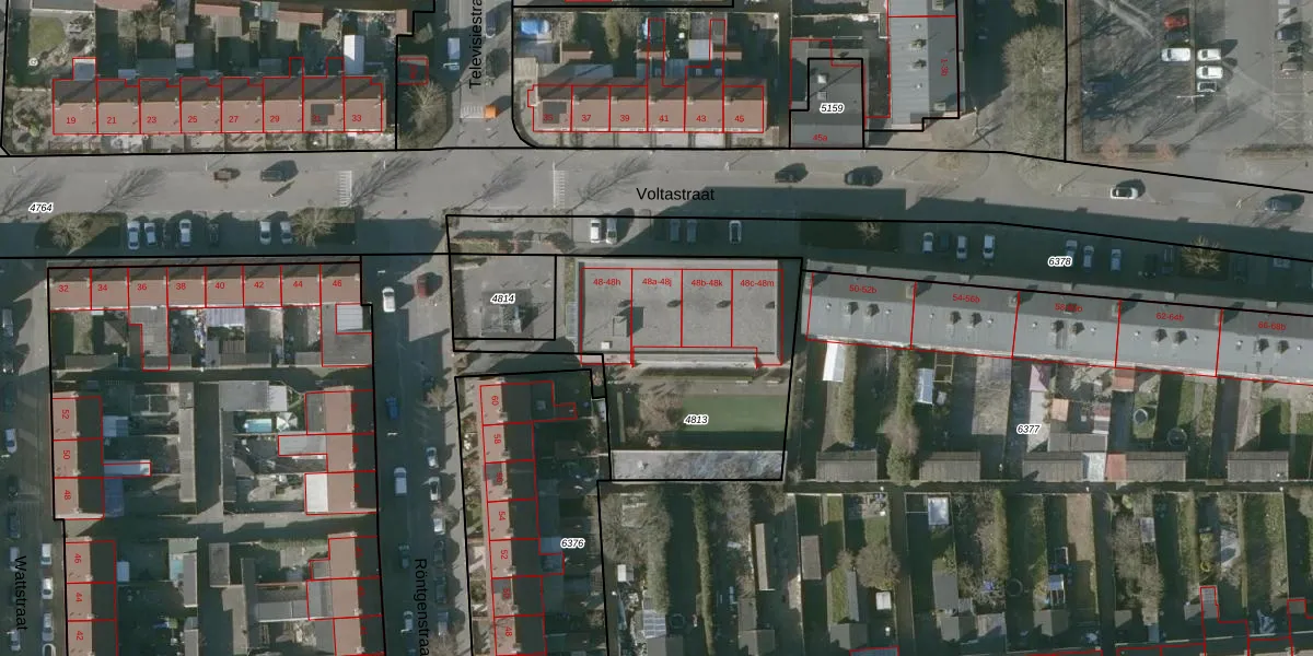 Voltastraat 48-a is gelegen op kadastraal perceel RSD00B4813. Deze kadastrale aanduiding is uniek en wordt gebruikt door het Kadaster om eigendomsrechten en andere zakelijke rechten vast te leggen. Het perceel maakt onderdeel uit van de kadastrale gemeente Roosendaal en Nispen.