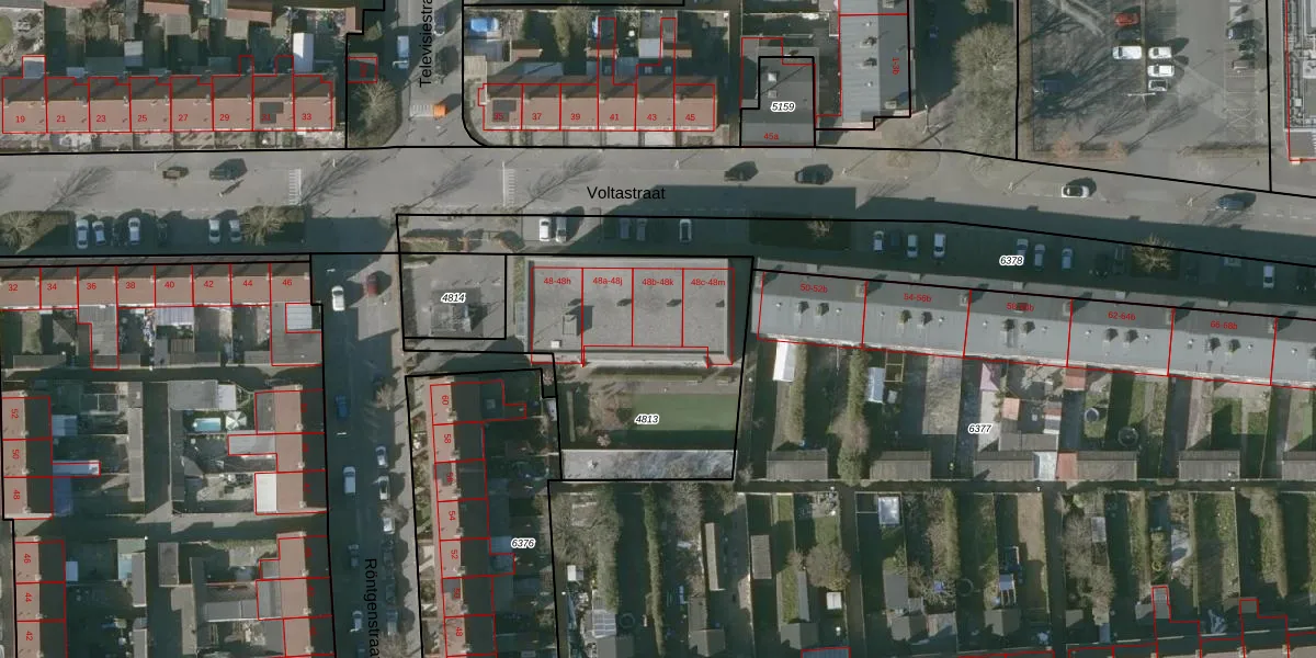 Voltastraat 48-k is gelegen op kadastraal perceel RSD00B4813. Deze kadastrale aanduiding is uniek en wordt gebruikt door het Kadaster om eigendomsrechten en andere zakelijke rechten vast te leggen. Het perceel maakt onderdeel uit van de kadastrale gemeente Roosendaal en Nispen.