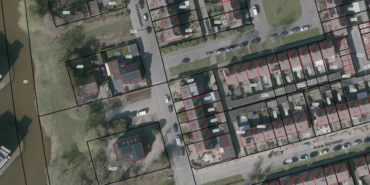 Het perceel waarop Vondellaan 53 staat heeft een oppervlakte van 284 m². Dit is een middelgroot perceel. De perceeloppervlakte wordt geregistreerd door het Kadaster. Gedetailleerde informatie over de maten van dit perceel kunt u vinden in het rapport Kadastrale kaart met maatvoering van Vondellaan 53.