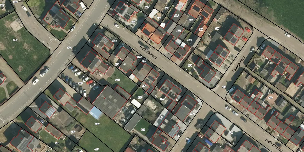 Belhofstraat 9 is gelegen op kadastraal perceel RTR00G176. Deze kadastrale aanduiding is uniek en wordt gebruikt door het Kadaster om eigendomsrechten en andere zakelijke rechten vast te leggen. Het perceel maakt onderdeel uit van de kadastrale gemeente Roosteren.