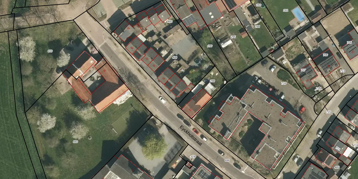 Eyckholtstraat 14 is gelegen op kadastraal perceel RTR00G494. Deze kadastrale aanduiding is uniek en wordt gebruikt door het Kadaster om eigendomsrechten en andere zakelijke rechten vast te leggen. Het perceel maakt onderdeel uit van de kadastrale gemeente Roosteren.