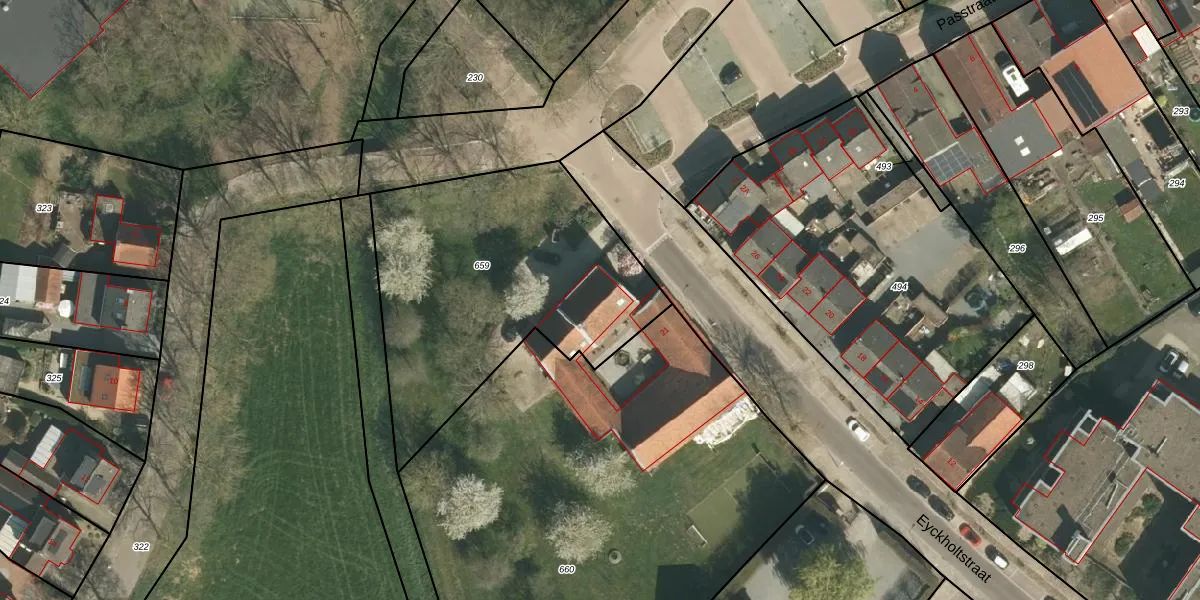 Eyckholtstraat 21 is gelegen op kadastraal perceel RTR00G659. Deze kadastrale aanduiding is uniek en wordt gebruikt door het Kadaster om eigendomsrechten en andere zakelijke rechten vast te leggen. Het perceel maakt onderdeel uit van de kadastrale gemeente Roosteren.