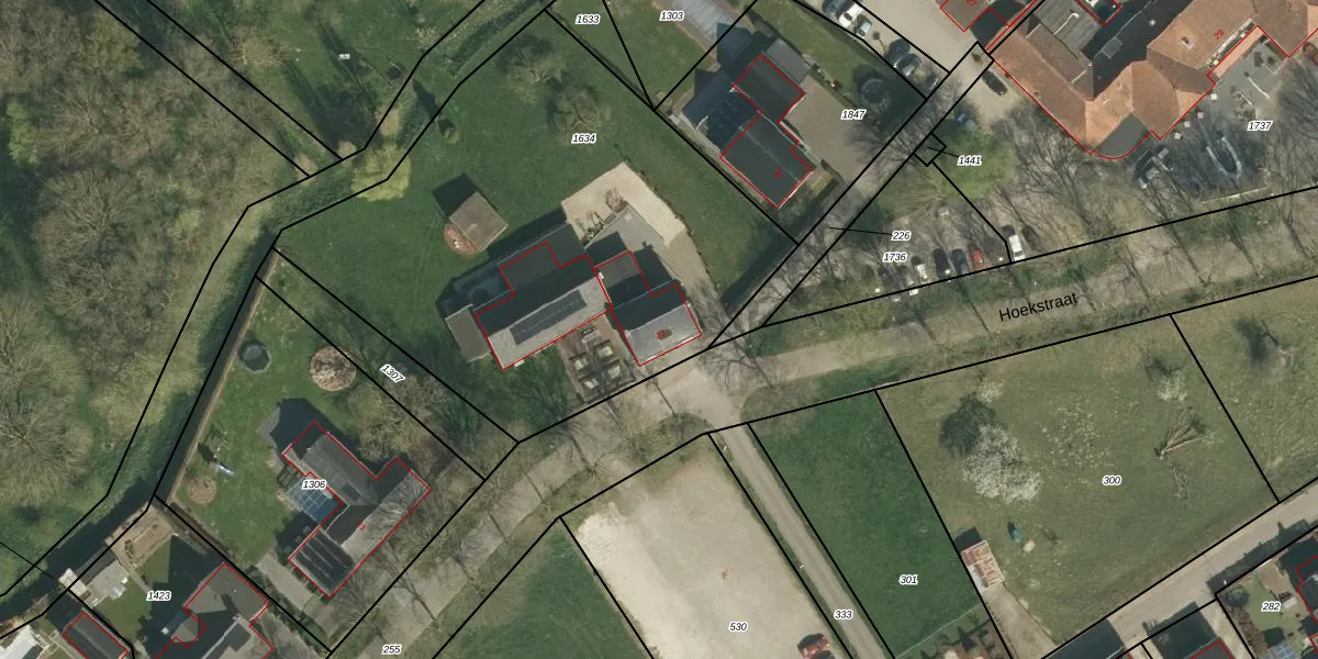 Hoekstraat 23 is gelegen op kadastraal perceel RTR00F1634. Deze kadastrale aanduiding is uniek en wordt gebruikt door het Kadaster om eigendomsrechten en andere zakelijke rechten vast te leggen. Het perceel maakt onderdeel uit van de kadastrale gemeente Roosteren.