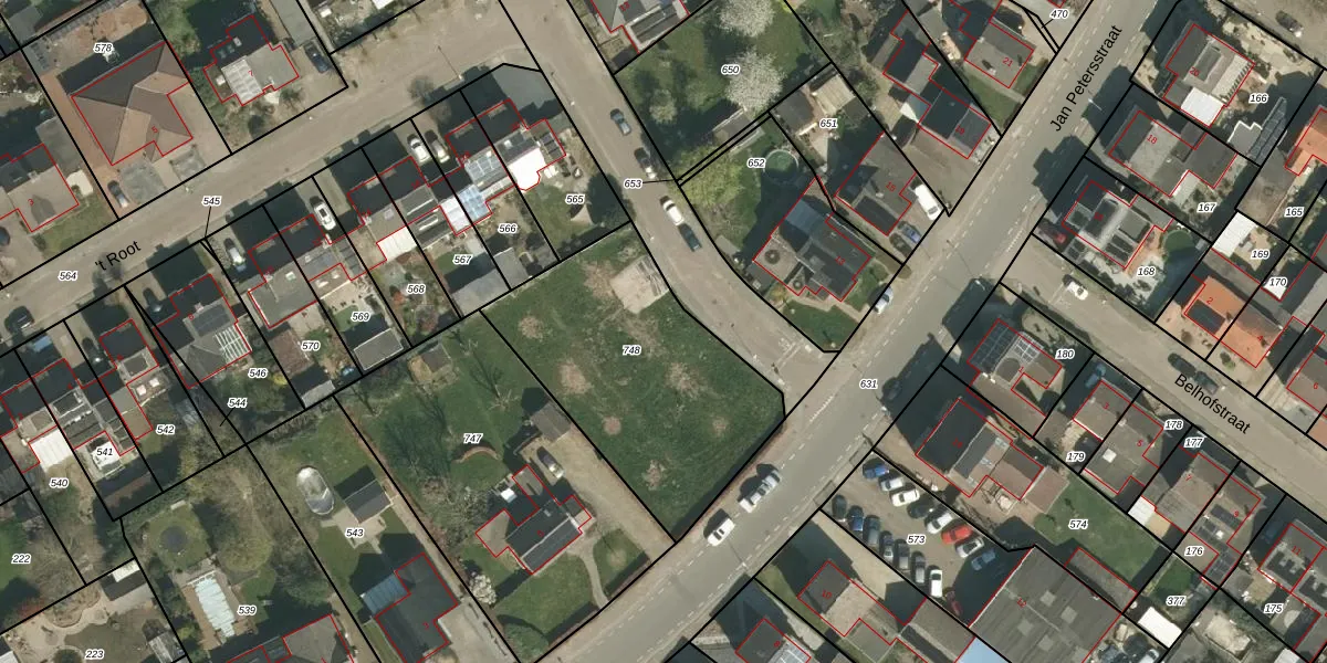 Het adres is gelegen op perceel 748 in de sectie G en de kadastrale gemeente Roosteren. De kadastrale aanduiding is aldus RTR00-G-748. Het perceel is kleiner dan gemiddeld in Roosteren. Het perceel is 1054 m² groot, terwijl het gemiddelde ligt op 4424,63 m². De grootste perceeloppervlakte in de kadastrale gemeente is 87,5 ha. De kleinste oppervlakte bedraagt 0 m². Op het perceel bevinden zich geen andere adressen. In de Basisregistratie Kadaster (BRK) werden de grenzen van het perceel geregistreerd op 15-08-2023.