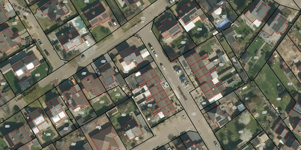 Het perceel waarop Hoogveld 2 staat heeft een oppervlakte van 950 m². Dit is een groot perceel. De perceeloppervlakte wordt geregistreerd door het Kadaster. Gedetailleerde informatie over de maten van dit perceel kunt u vinden in het rapport Kadastrale kaart met maatvoering van Hoogveld 2.