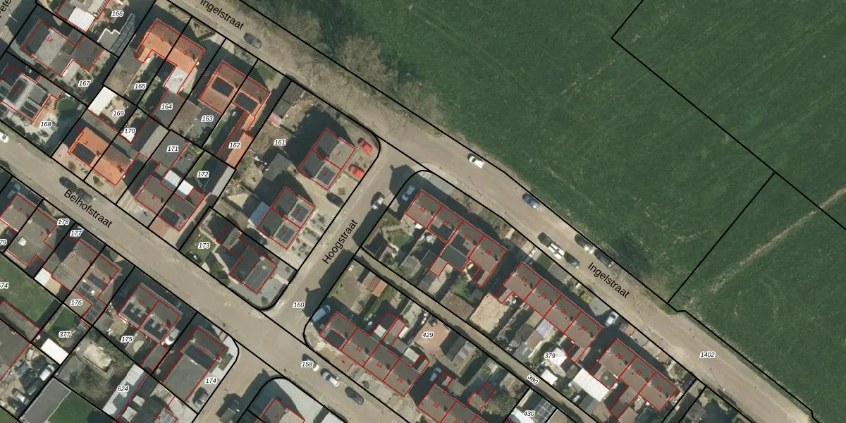 Het perceel waarop Ingelstraat 13 staat heeft een oppervlakte van 1953 m². Dit is een zeer groot perceel. De perceeloppervlakte wordt geregistreerd door het Kadaster. Gedetailleerde informatie over de maten van dit perceel kunt u vinden in het rapport Kadastrale kaart met maatvoering van Ingelstraat 13.