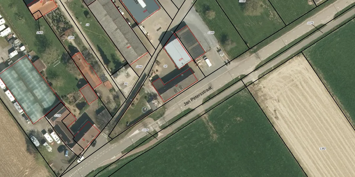 Jan Petersstraat 57 is gelegen op kadastraal perceel RTR00F32. Deze kadastrale aanduiding is uniek en wordt gebruikt door het Kadaster om eigendomsrechten en andere zakelijke rechten vast te leggen. Het perceel maakt onderdeel uit van de kadastrale gemeente Roosteren.