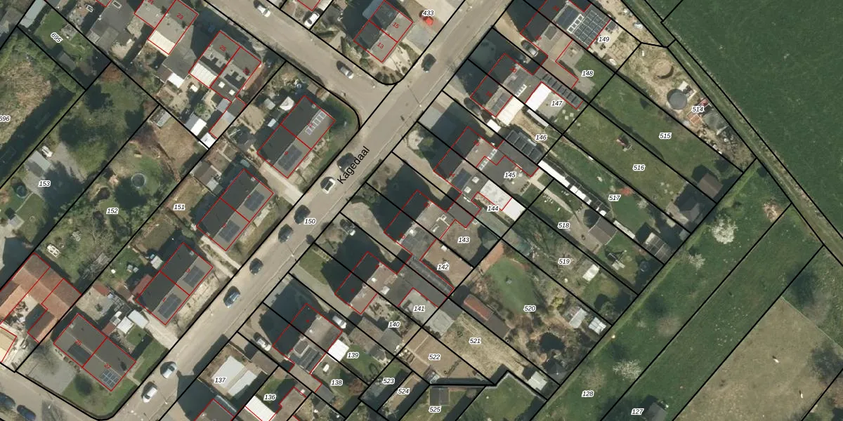 Kagedaal 12 is gelegen op kadastraal perceel RTR00G143. Deze kadastrale aanduiding is uniek en wordt gebruikt door het Kadaster om eigendomsrechten en andere zakelijke rechten vast te leggen. Het perceel maakt onderdeel uit van de kadastrale gemeente Roosteren.