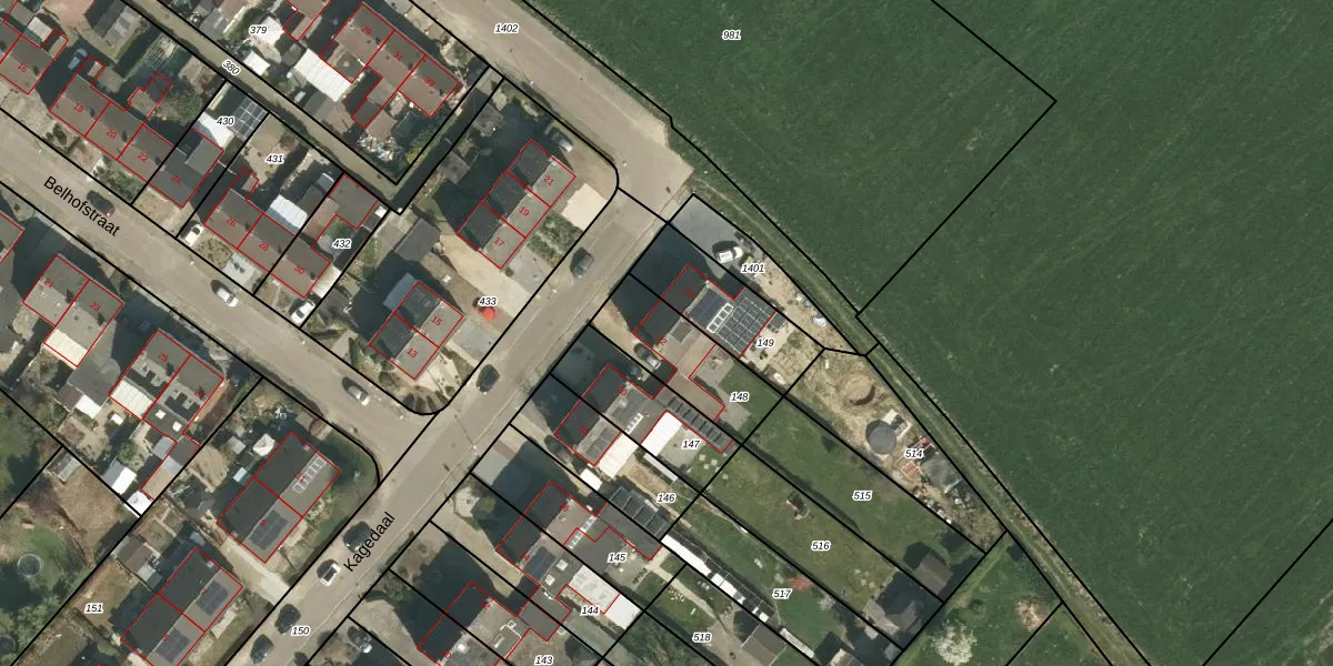 Gebruik de zoekbalk of klik op een perceel voor informatie over de adressen binnen dit perceel.