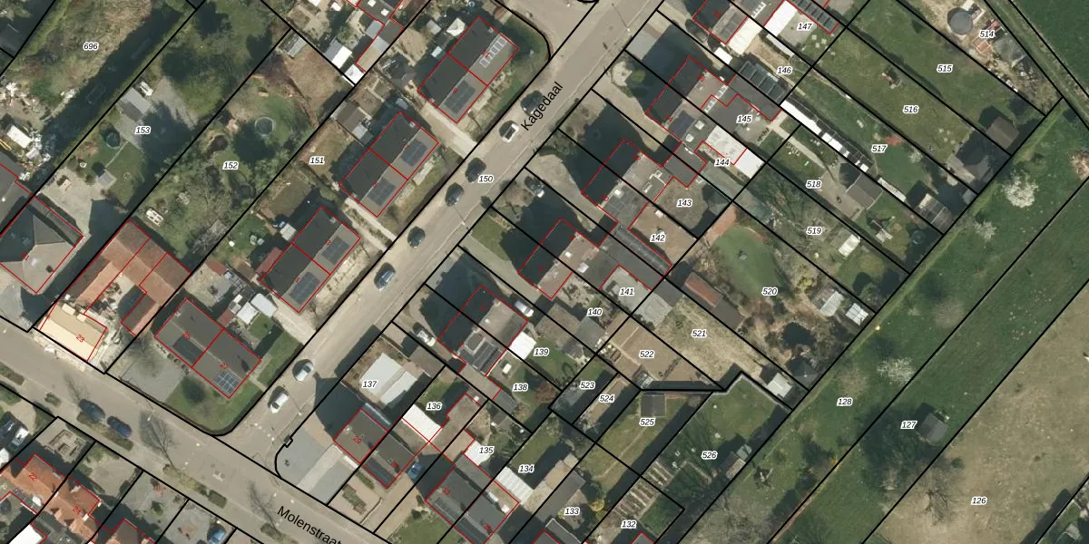 Kagedaal 6 is gelegen op kadastraal perceel RTR00G140. Deze kadastrale aanduiding is uniek en wordt gebruikt door het Kadaster om eigendomsrechten en andere zakelijke rechten vast te leggen. Het perceel maakt onderdeel uit van de kadastrale gemeente Roosteren.