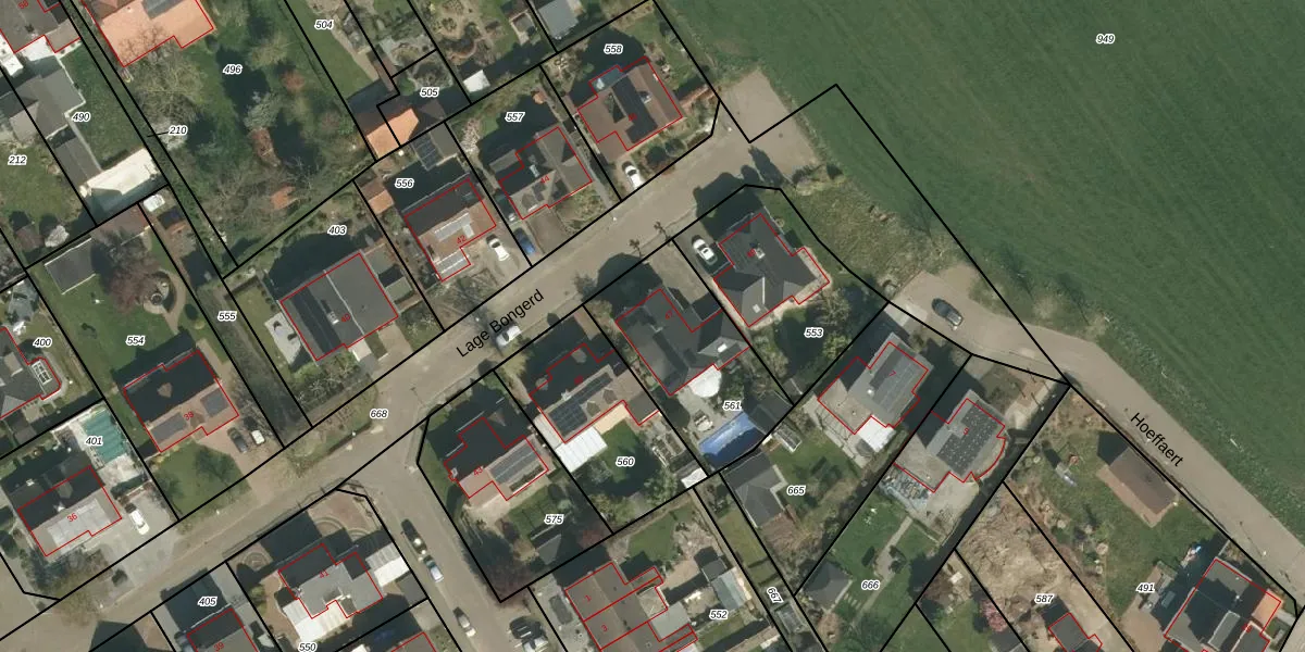Het perceel waarop Lage Bongerd 47 staat heeft een oppervlakte van 560 m². Dit is een groot perceel. De perceeloppervlakte wordt geregistreerd door het Kadaster. Gedetailleerde informatie over de maten van dit perceel kunt u vinden in het rapport Kadastrale kaart met maatvoering van Lage Bongerd 47.