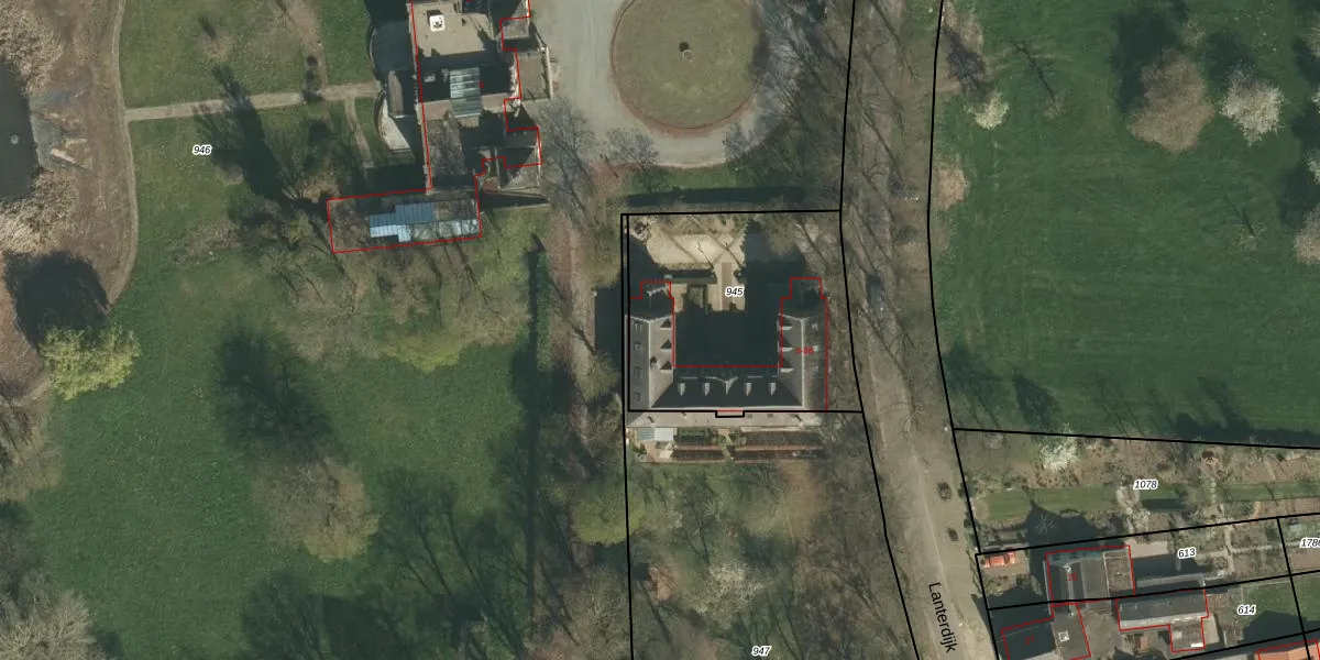 Het perceel waarop Lanterdijk 8-B staat heeft een oppervlakte van 1020 m². Dit is een zeer groot perceel. De perceeloppervlakte wordt geregistreerd door het Kadaster. Gedetailleerde informatie over de maten van dit perceel kunt u vinden in het rapport Kadastrale kaart met maatvoering van Lanterdijk 8-B.