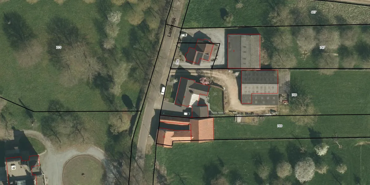 Het perceel waarop Lanterdijk 9 staat heeft een oppervlakte van 2980 m². Dit is een zeer groot perceel. De perceeloppervlakte wordt geregistreerd door het Kadaster. Gedetailleerde informatie over de maten van dit perceel kunt u vinden in het rapport Kadastrale kaart met maatvoering van Lanterdijk 9.