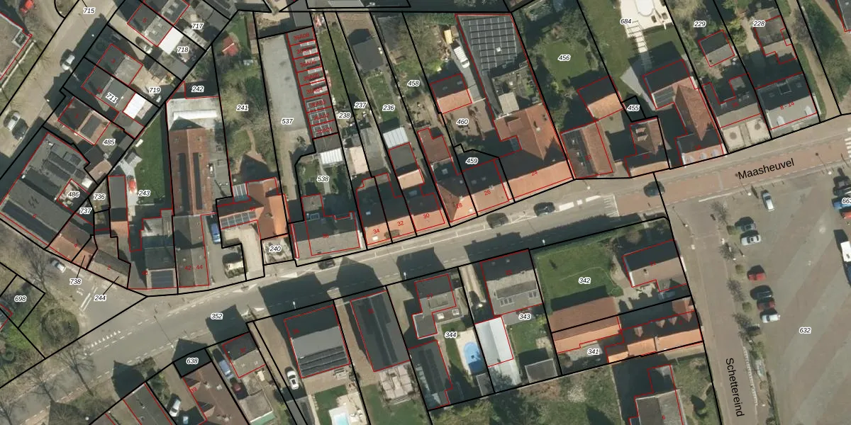 Het perceel waarop Maasheuvel 30 staat heeft een oppervlakte van 428 m². Dit is een groot perceel. De perceeloppervlakte wordt geregistreerd door het Kadaster. Gedetailleerde informatie over de maten van dit perceel kunt u vinden in het rapport Kadastrale kaart met maatvoering van Maasheuvel 30.