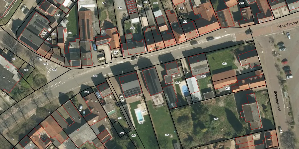 Gebruik de zoekbalk of klik op een perceel voor informatie over de adressen binnen dit perceel.