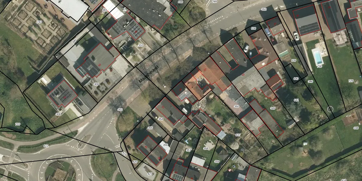 Het perceel waarop Maasheuvel 49 staat heeft een oppervlakte van 905 m². Dit is een groot perceel. De perceeloppervlakte wordt geregistreerd door het Kadaster. Gedetailleerde informatie over de maten van dit perceel kunt u vinden in het rapport Kadastrale kaart met maatvoering van Maasheuvel 49.