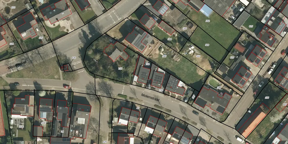 Het perceel waarop Molenstraat 5 staat heeft een oppervlakte van 195 m². Dit is een middelgroot perceel. De perceeloppervlakte wordt geregistreerd door het Kadaster. Gedetailleerde informatie over de maten van dit perceel kunt u vinden in het rapport Kadastrale kaart met maatvoering van Molenstraat 5.