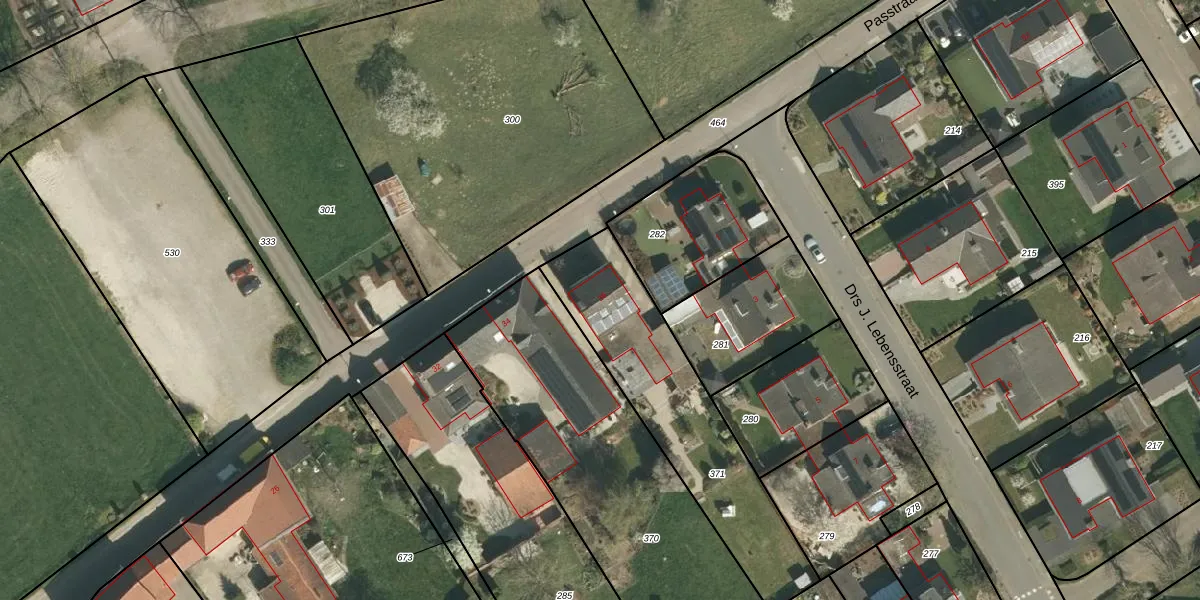 Het perceel waarop Passtraat 36 staat heeft een oppervlakte van 800 m². Dit is een groot perceel. De perceeloppervlakte wordt geregistreerd door het Kadaster. Gedetailleerde informatie over de maten van dit perceel kunt u vinden in het rapport Kadastrale kaart met maatvoering van Passtraat 36.
